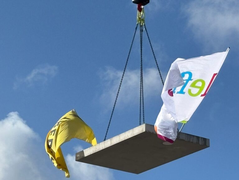 Onder applaus van de aanwezigen werd vandaag de vlag gehesen aan de Stellingstraat – hét teken dat het hoogste punt van de nieuwbouw in Klazienaveen is bereikt. Lefier en aannemer Dura Vermeer vierden deze mijlpaal samen met omwonenden en partners. De bouw van 25 sociale huurwoningen aan de Stellingstraat en Molenwijk verloopt voorspoedig en ligt op schema.